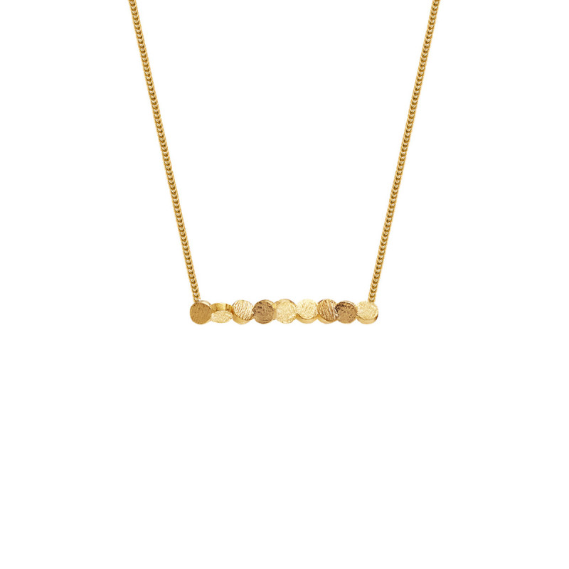 Between chaos and order there is no opposition, but an invisible dialogue. This necklace captures the essence of that dynamic balance, representing the beauty that emerges from the interaction between seemingly opposing forces. The design explores the harmony found at the meeting point of randomness and structure, inviting reflection on the complexity of life.