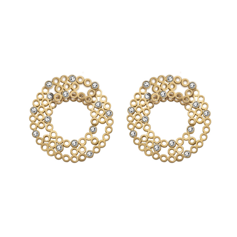 Brincos 2 em 1 | 20 mm Diâmetro | Plaqueados a Ouro (Prata Dourada) | 20 CZ