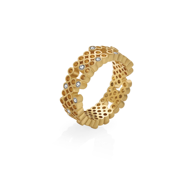 Anel 4 mm | Plaqueado a Ouro (Prata Dourada) | 15 CZ