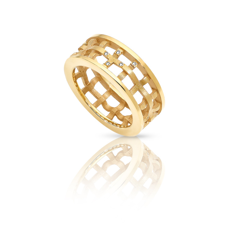 A beleza do detalhe do movimento das ondas. Caracterização das ondas de um rio pela visão infantil. O splash de brilho quando o sol encontra a água está representado por zircões. Desenhado por: Sara Coutinho Prata 925 | 6,5 g Anel 8 mm | Plaqueado a Ouro | 11 CZ Acabamento Areado Manual Delicado e Polido | Cravação Inglesa Aleatória
