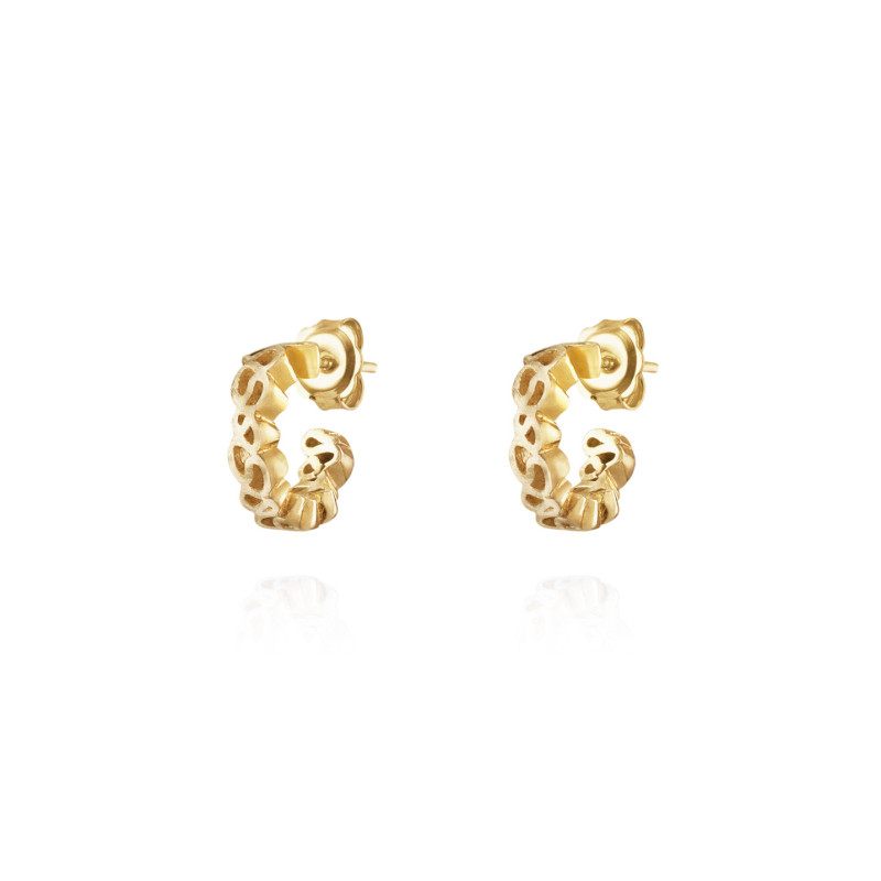Inspirado no trabalho de Michelangelo Pistoletto para a Serpentine gallery. Estas argolas reinterpretam a complexidade e profundidade do trabalho de Pistoletto, transformando conceitos artísticos em peças de joalharia circulares. O design labiríntico em forma de argola simboliza a jornada interior circular, os ciclos que percorremos e as descobertas que fazemos ao explorar os meandros da nossa própria mente.