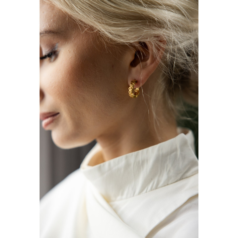 Inspirado no trabalho de Michelangelo Pistoletto para a Serpentine gallery. Estas argolas reinterpretam a complexidade e profundidade do trabalho de Pistoletto, transformando conceitos artísticos em peças de joalharia circulares. O design labiríntico em forma de argola simboliza a jornada interior circular, os ciclos que percorremos e as descobertas que fazemos ao explorar os meandros da nossa própria mente.